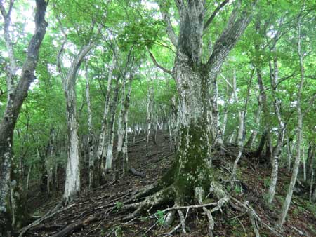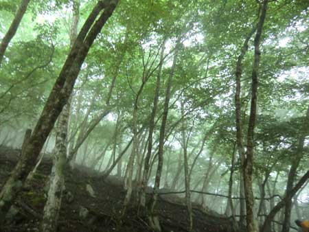 ●本権現山と大仏の野に行ってきました No.24の岡澤重男さんのツアー、好評だったようです。2011年6月26日(日)、そのコースを歩いてみました。当日は天気が悪く、雨こそ降らなかったものの、霧で視界ゼロでした。大仏の野という小広い丘からは丹沢湖や周辺の山々を見渡せて絶景なのだそうですが、その丘だけでもなかなか素敵でした。晴れていたらどんなにきれいなのか。ぜひ今度は晴れた日に行きたいです。湿気があったせいか、ブナの緑がとても美しかったです。