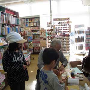 | 3月9日(土)、厚木市の文教堂R412店さんで行われた『ふりかえってみよう 昔の知恵』の著者、中丸武夫さんの昔のおもちゃで遊ぼう! イベント、おかげさまで大盛況のうちに終了しました。 昔のおもちゃ、作りはシンプルですが、はまると何度も何度も繰り返したくなってしまう面白みがあります。本で紹介しているおもちゃをいくつか展示して、みなさんに遊んでもらいました。糸電話があんなに聞こえるのにもびっくり、引っ張りすぎて糸が取れてもすぐに修復してしまう中丸さんにもびっくりでした。 土曜日で来店者が多くお忙しい中、こういうイベントを実現させてくださった太田店長さんはじめ文教堂のスタッフのみなさんには心より感謝申し上げます。 |