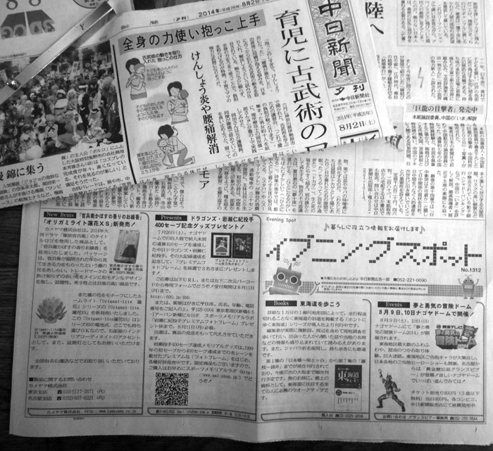 「東京新聞」「中日新聞」 2014年8月2日(土)夕刊 「イブニングスポット」 |