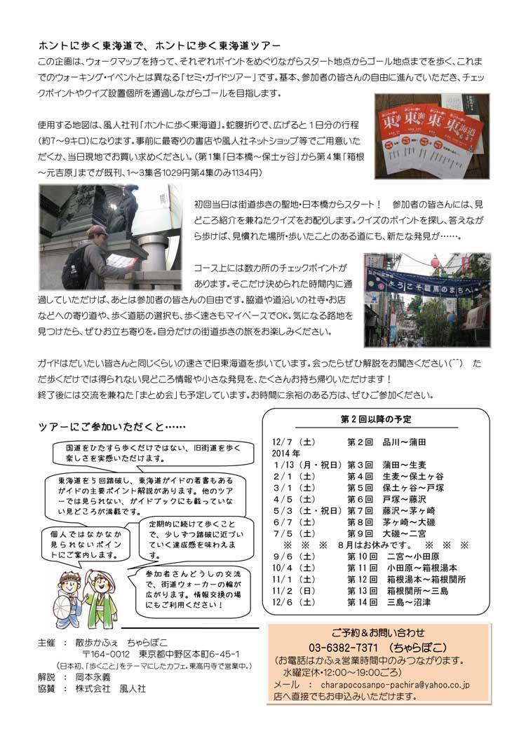 ガイド岡本永義さんのブログ(第1回目の様子と2回目の予告) http://tokaidorekishi.hatenablog.com/entry/2013/11/12/214112
