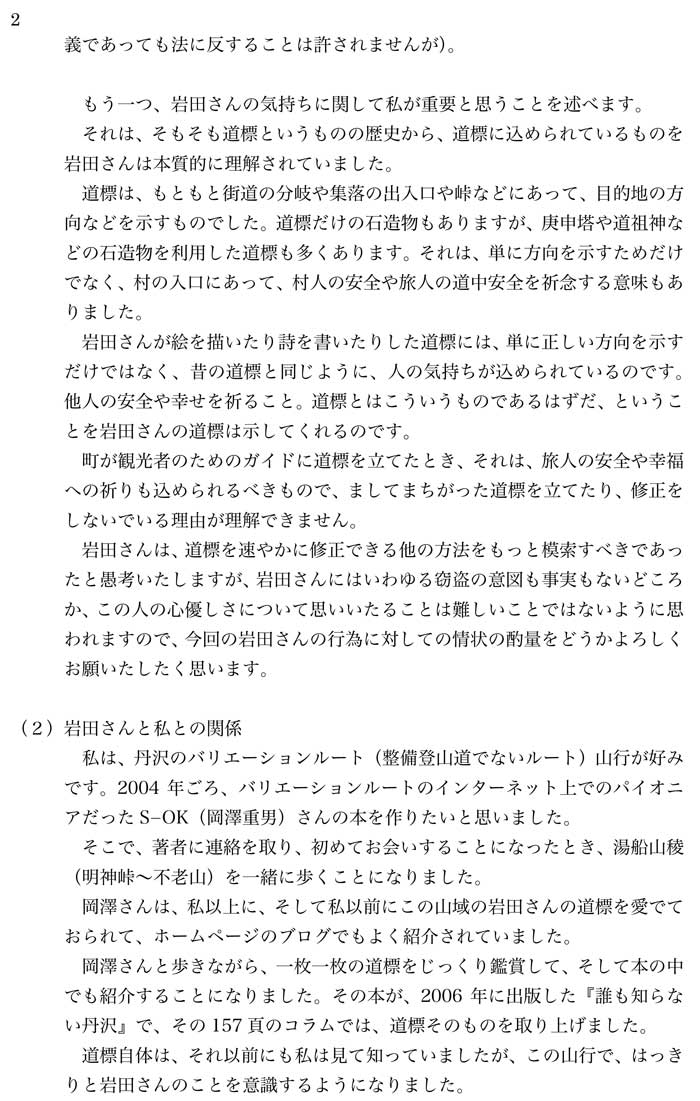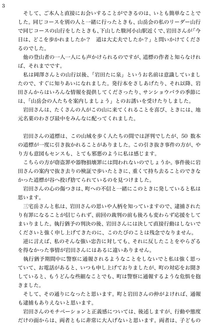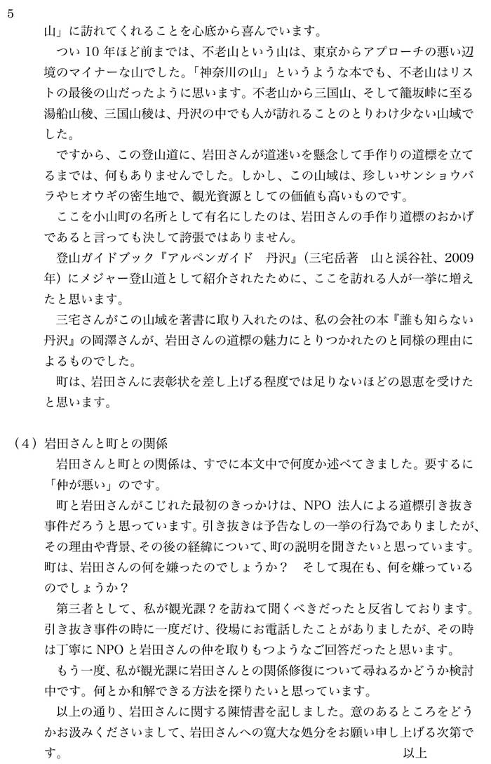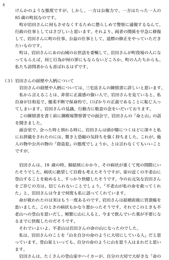 岩田たに泉さんに関する陳情書