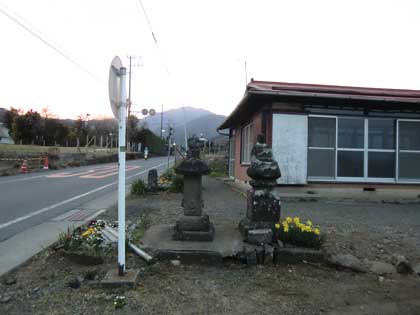 石倉橋の石造物。大山(2011年4月)道標は第二東名建設工事に伴い移動。