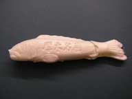 | 大山街道は鮎が江戸に運ばれる道でもありました。特に相模川の鮎は美味だったらしく、魚が新鮮なうちに届けるために、夜、厚木を出発して早朝に江戸に着く便があったそうです。 中平さんによると、相模川は、河口湖と山中湖が源流です。水がとてもきれいで、昔から鮎が多く穫れ、「鮎川」とも呼ばれていたそうです。相模川の西側に小鮎川(地図で追っていったら宮ヶ瀬湖の近くまで遡っていました)という川もあり、相模川に流れ込んでいます。 その名残でしょうか、厚木では鮎にちなんだお菓子が売られていました。 |