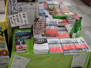 | パネルの白い部分(酒瓶で隠れている部分)には、「清酒 大山街道。辛口で美味しい! 一階お酒コーナーにて好評発売中です。大山へいらっしゃったお土産にどうぞ」と書かれています。 文教堂さんを訪れた私の友人は、「うっかり買って帰った」と言っていました。 |