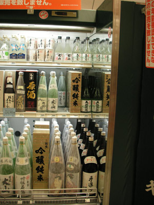 | 1階の酒コーナー。いちばん上と真ん中の段の右端にあるのが「大山街道」。他にも「大山」と書かれたラベルのお酒がたくさんあります。(07年8月26日) | ||