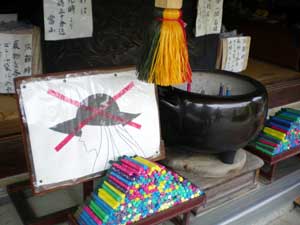 | 地下霊場に入るには、お堂に上がり、お寺の方の説明をうかがいます。100円を払い、お寺の専用サンダルに履き替え、地下へと降りていきます。
