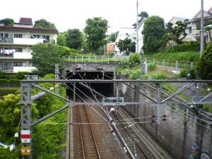 ![]() 田園都市線を越える。このあたりに玉電の玉真院の駅があったそうです。 |