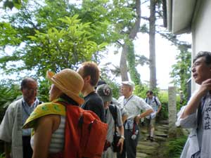 ![]() 寺の裏から行善寺八景を眺める参加者の皆さん。 |
