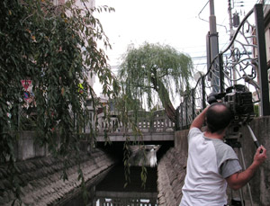 溝口の大石橋。二ヶ領用水に下りて撮影していました。 |