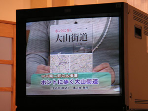 番組は30分の放送で、まず地域のニュースがあり、その後、「地域に注目」というコーナーで中平さんが登場されます。「大山街道を散策しませんか」というタイトルでした。 |