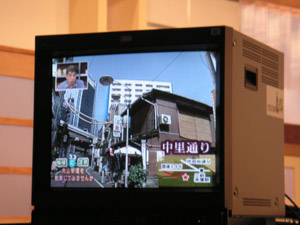 ![]() スタジオ内のモニター。モニターの後ろに本物の中平さんが見えます。 |