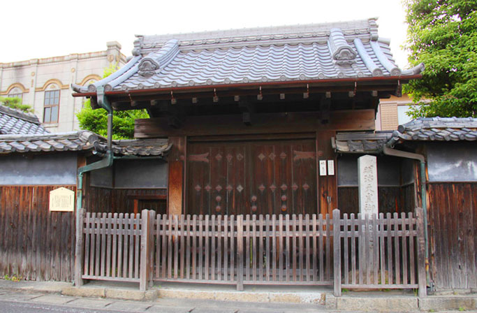清須宿本陣。立派な門と明治天皇聖跡碑が残ります。