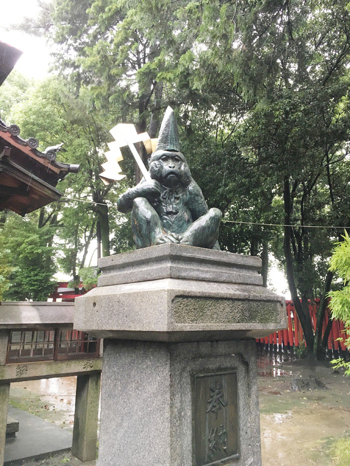 日吉神社のさる。秀吉の生母、大政所が祈願して秀吉を授かったと伝わります。